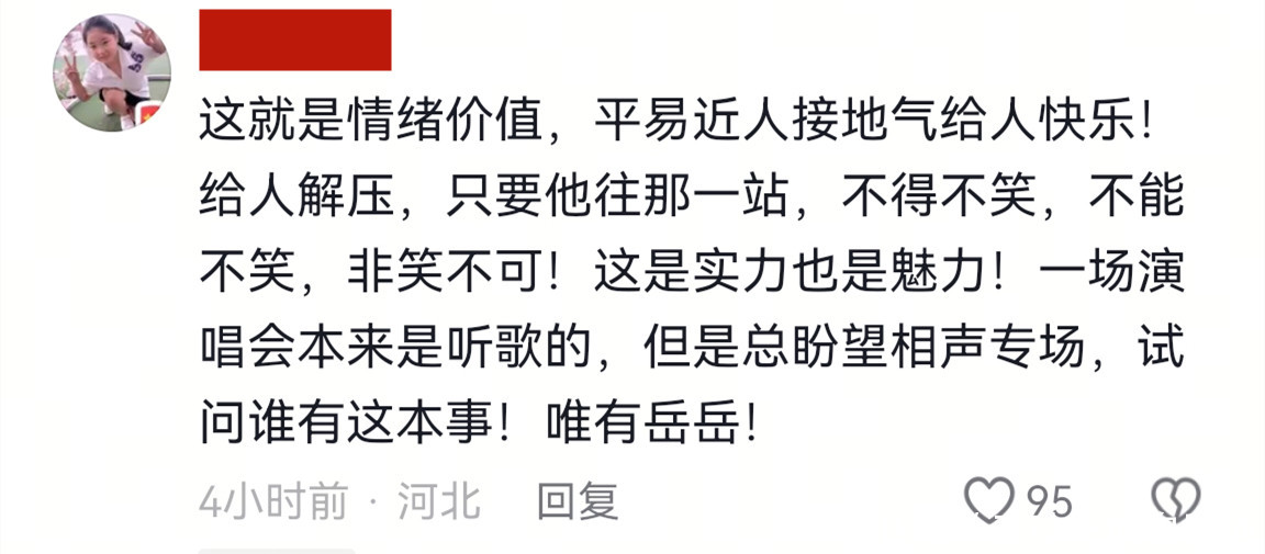 事实证明,岳云鹏给现场观众的情绪价值拉满了,他让观众度过了一个开心的夜晚,而这对于观众而言,就足够了。