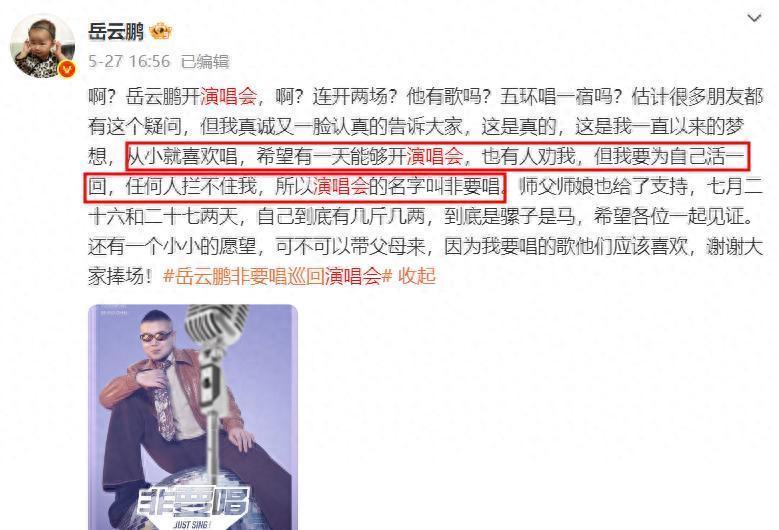 他说岳云鹏唱歌又不违法,他想唱就让他唱,要是办演唱会赔钱了,他自己就会改,不用他人劝。